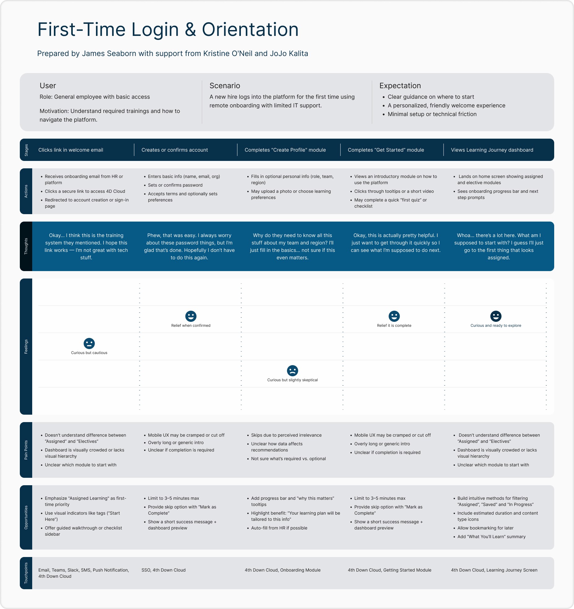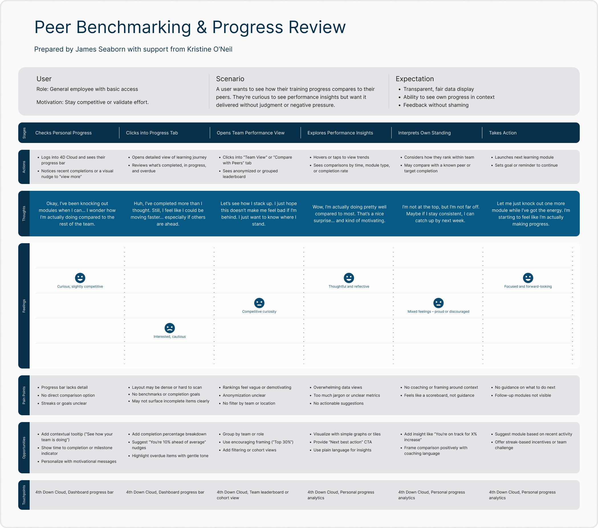 Stakeholder interviews across product, engineering, and client services.