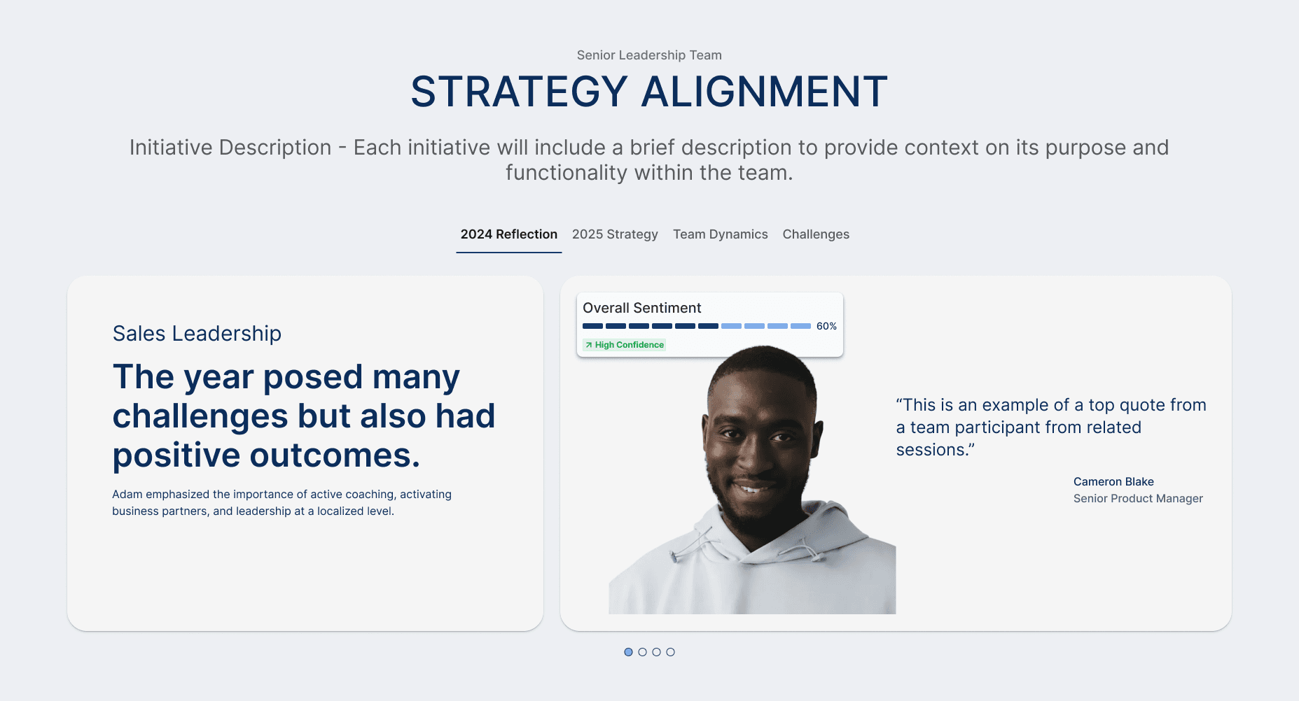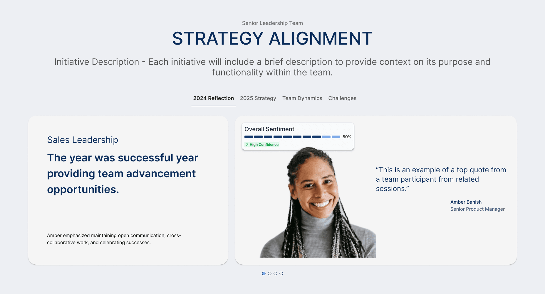 One of the biggest lessons was that insight alone isn’t enough. Leaders need context, contrast, and continuity — the ability to see not just what’s being said, but how things are shifting over time. We found that even small design decisions — like how summaries are framed, or how language is softened — had a measurable impact on user trust and willingness to share.